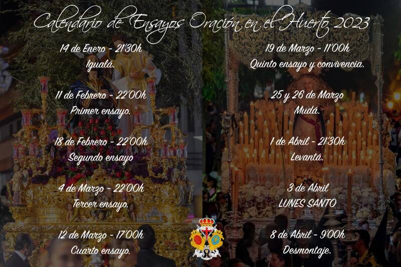 Os dejamos algunos de los cuadrantes y fechas ya confirmadas por parte de los equipos de capataces y hermandades para los ensayos de costaleros que tendrán lugar en esta cuaresma de 2023 en la ciudad de Linares. Si quieres que publiquemos el de tu hermandad puedes hacérnoslo llegar a la dirección de correo ladesarmatertuliacofrade@gmail.com